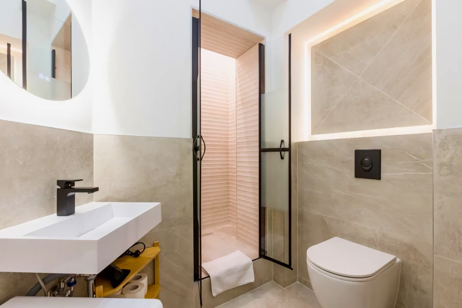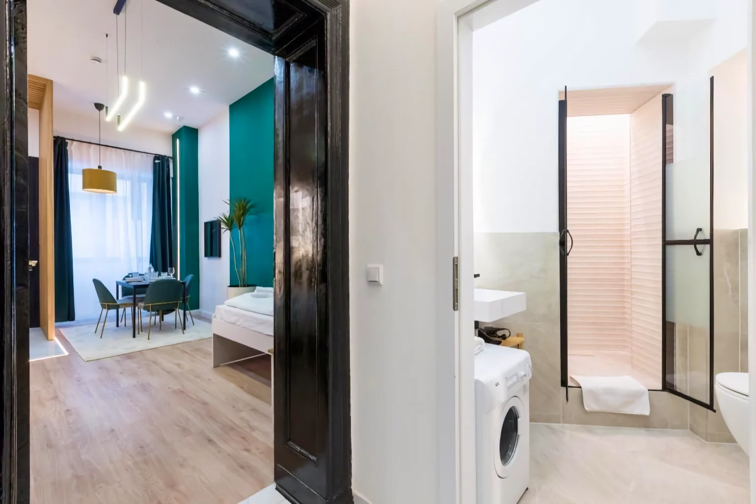 Das Apartment bietet mehrere Schlafmöglichkeiten und eignet sich besonders gut für Gäste, die viel Platz und eine hochwertige Ausstattung schätzen. Die Schlafzimmer sind so gestaltet, dass sowohl Ruhe als auch Funktionalität im Mittelpunkt stehen – perfekt für Familien, Freunde oder Kollegen, die gemeinsam reisen, aber dennoch Privatsphäre genießen möchten.