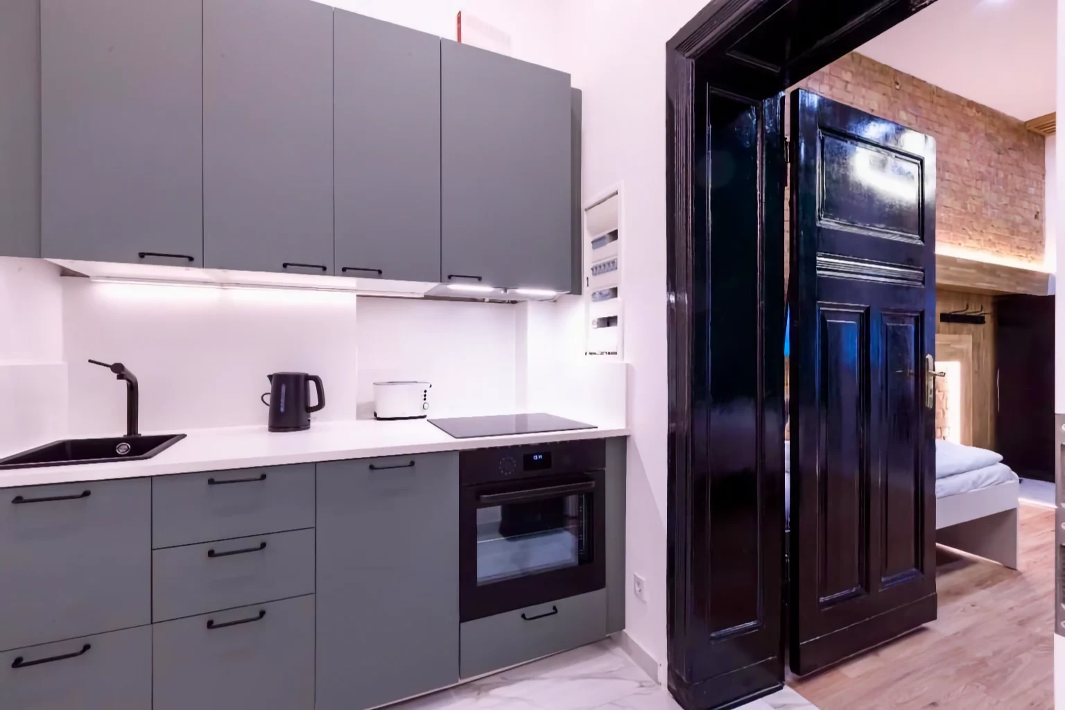 Schon beim Betreten spürst du den Charakter der Wohnung: klare Linien, harmonische Farben und liebevolle Details. Der offene Wohnbereich lädt zum Zusammensitzen ein – ideal für gemeinsame Abende, entspannte Stunden oder einfach eine Pause nach einem Tag in der Stadt. Die Küche ist modern und praktisch ausgestattet, damit du vom schnellen Frühstück bis zum gemeinsamen Dinner alles bequem umsetzen kannst.