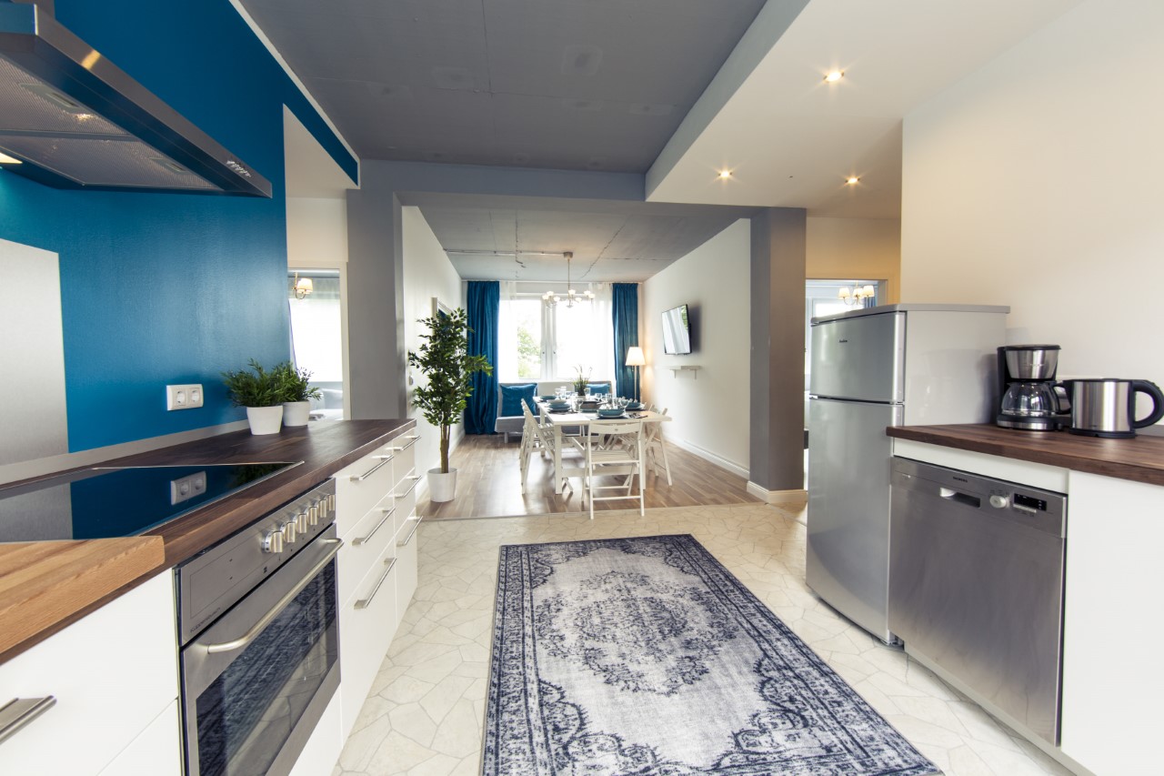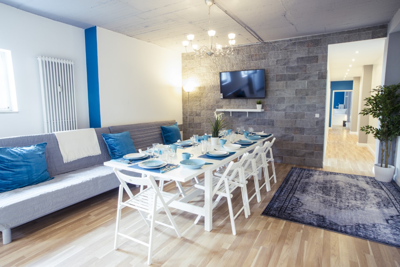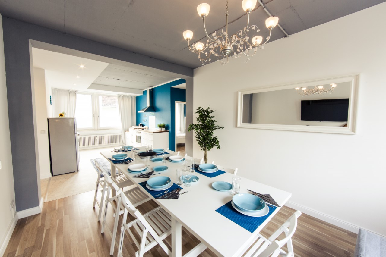 Willkommen in einem großzügigen 188 Quadratmeter Apartment, das keine Wünsche offen lässt. Ausgestattet mit 6 Schlafzimmern, einem gemütlichen Wohnbereich mit offener Küche und insgesamt 4 Badezimmern, ist dieses Apartment ideal für größere Gruppen und Familien. Auch Geschäftsreisende werden die Privatsphäre und den Komfort eines eigenen Zimmers zu schätzen wissen. Der große Konferenztisch im Hauptraum bietet zudem eine ausgezeichnete Gelegenheit, Meetings abzuhalten oder den Tagesplan zu besprechen.