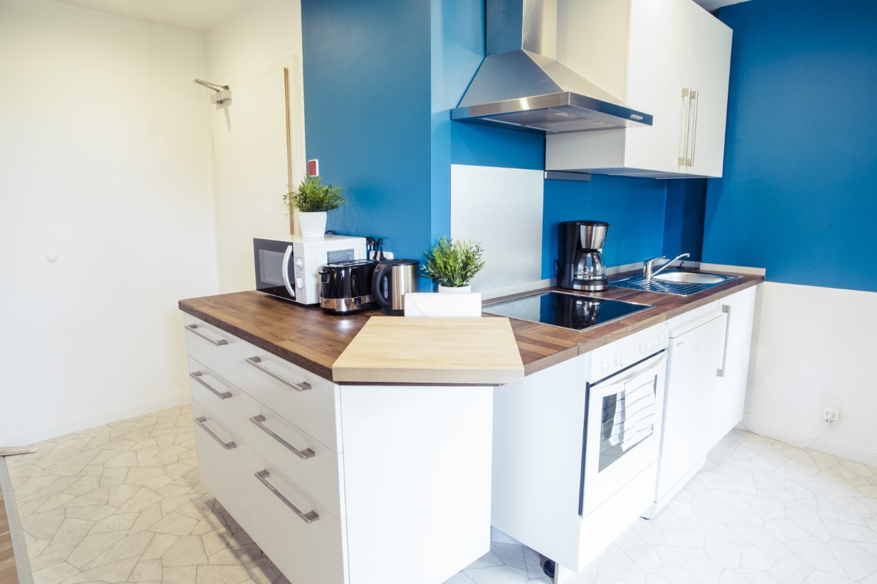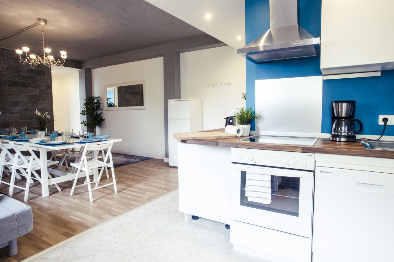 Die offene Küche bietet alles, was man für gemeinsame Kochabende benötigt: Herd, Ofen, Geschirrspüler, Wasserkocher, Kaffeemaschine und vieles mehr. Im Wohnbereich finden Sie neben einem modernen Flachbildfernseher und DVD-Player auch eine gemütliche Sitzgelegenheit und einen Essbereich. Selbstverständlich steht Ihnen auch WLAN zur Verfügung.